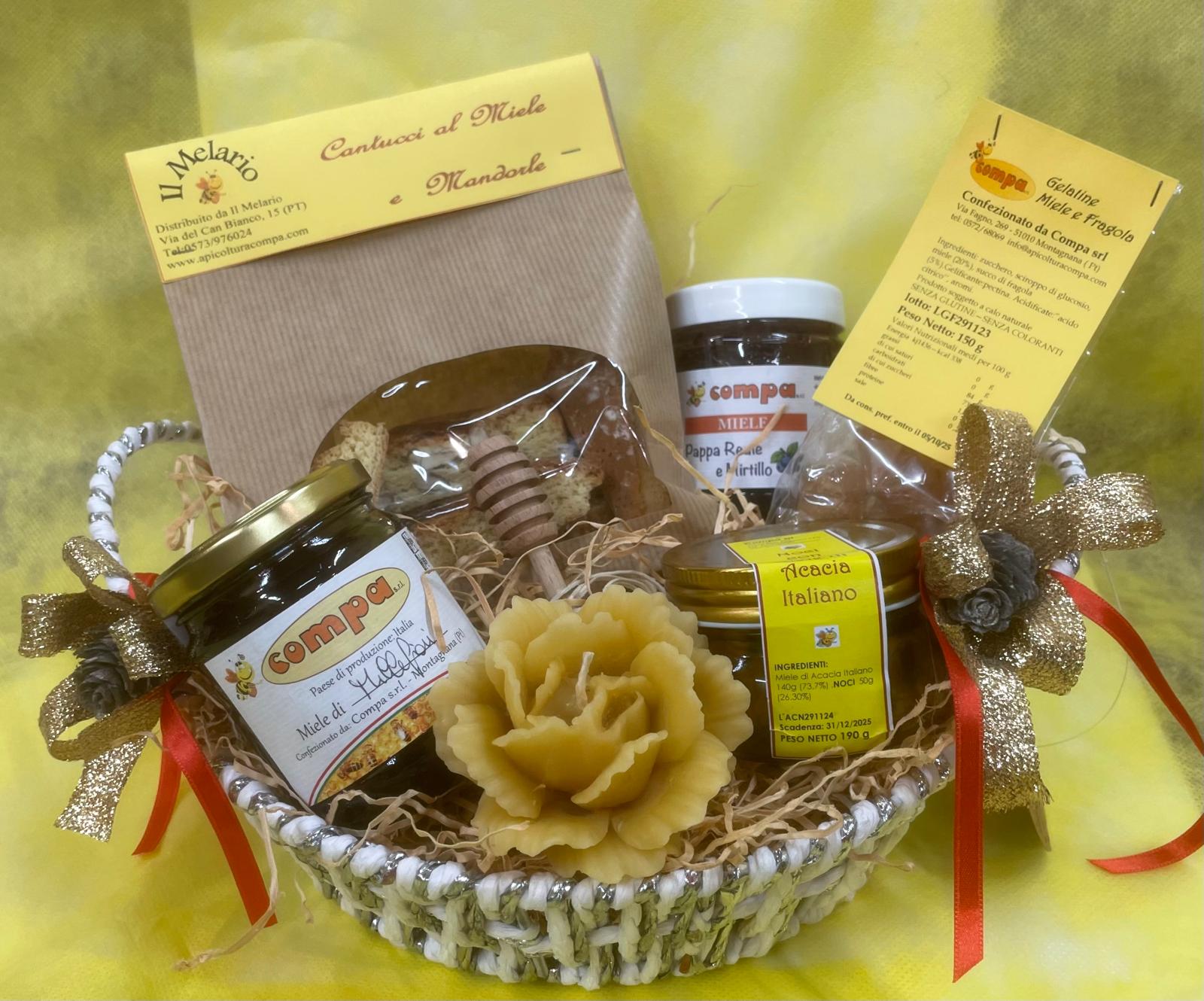 C’è tutto il gusto di Apicoltura Compa e dell’alveare nella Cesta grande alimentare.